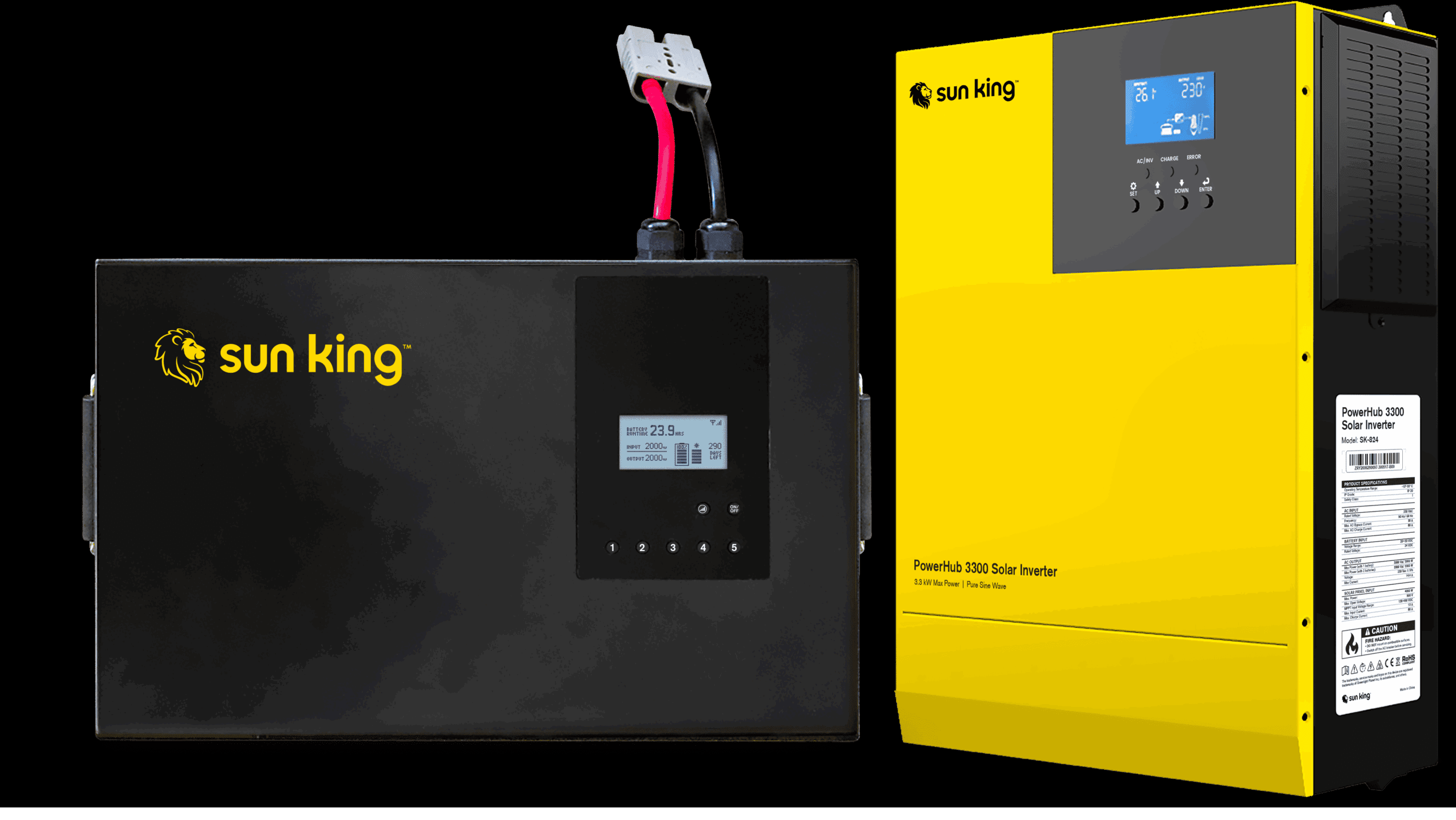 Power your lights and standard electrical appliances with Sun King’s PowerHub solar inverter and energy storage systems for modern homes and businesses. Customised to your needs and fully-integrated into your electricity distribution system to keep you powered at night, during outages, and when you want to go off-grid.